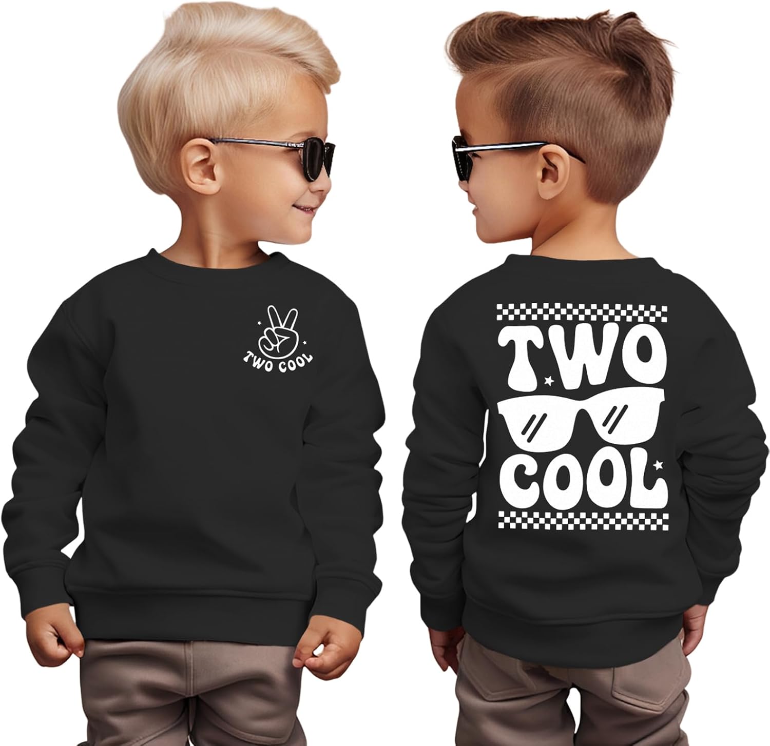 2nd Birthday Sweatshirt for Boy Two Cool Birthday Outfit 2 Year Old Toddler Boy Second Bday Party Long Sleeve Shirt