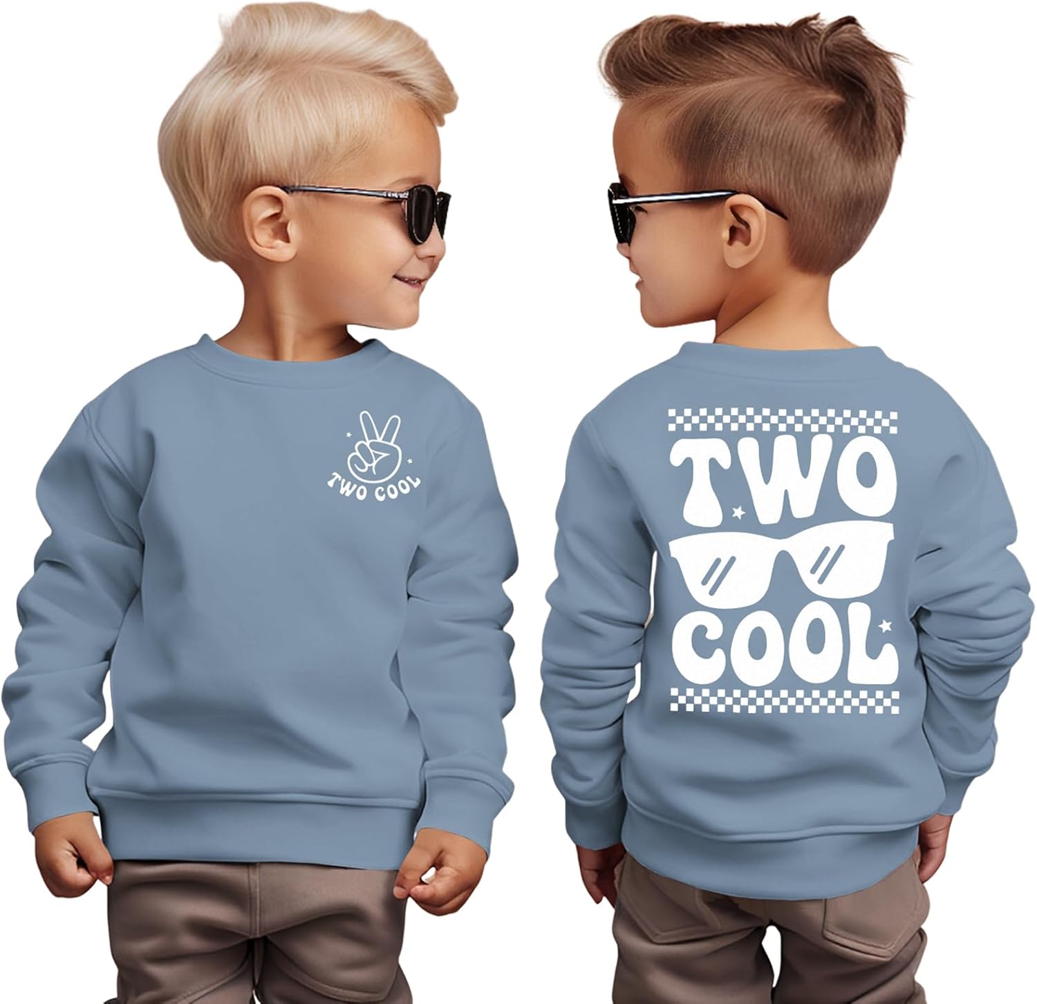 2nd Birthday Sweatshirt for Boy Two Cool Birthday Outfit 2 Year Old Toddler Boy Second Bday Party Long Sleeve Shirt