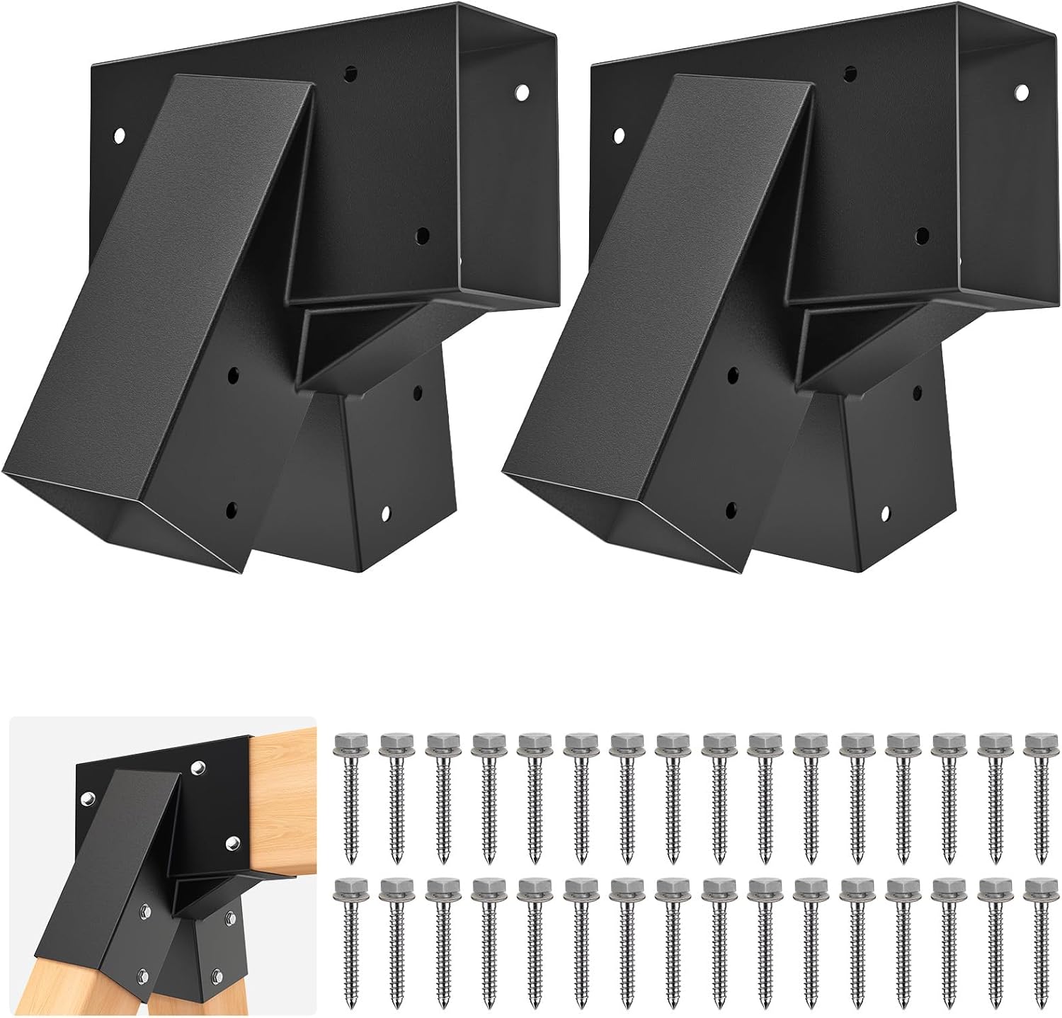SELEWARE Heavy-Duty Swing Set Brackets – A-Frame Swing Set Hardware Kit with Mounting Hardware, Fits 4 (4x4) Legs and 1 (4x6) Beam – DIY End Brackets for Backyard Swings