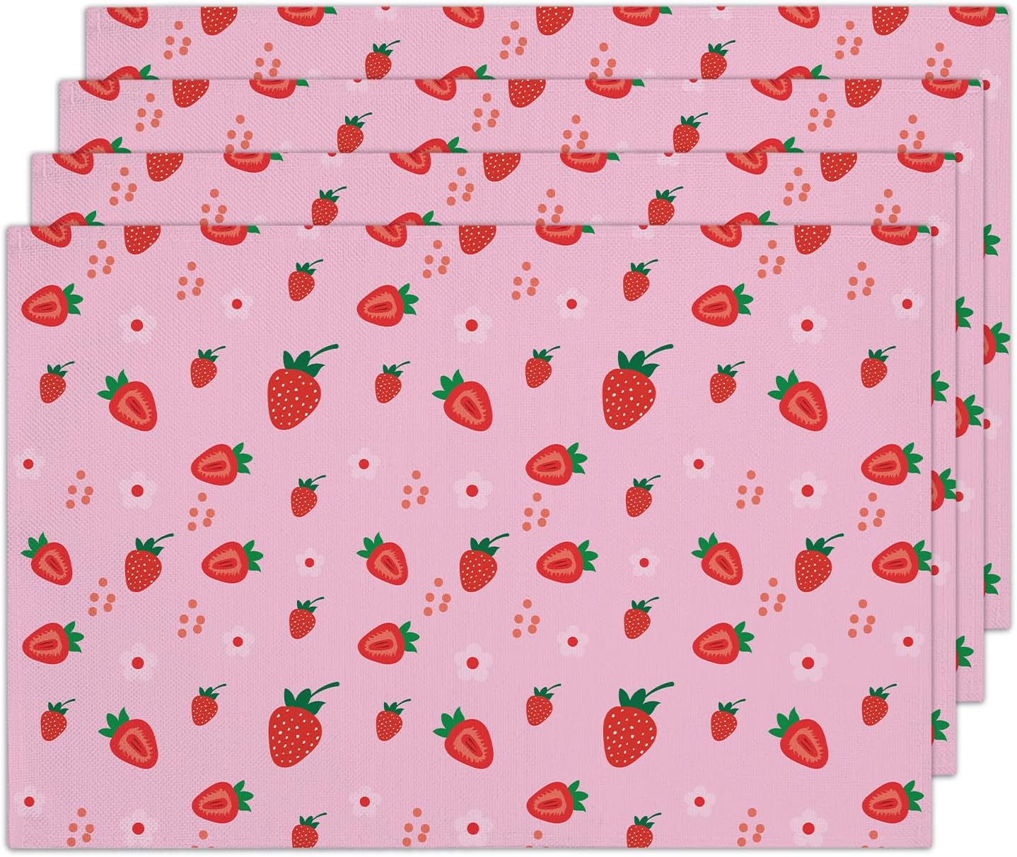 Strawberry Placemats Set of 4, Washable Heat Resistant Placemats Kitchen Table Mats,12x18 Inch Place Mats for Home Restaurant Farmhouse, Indoor Outdoor Party Table Decoration -A09