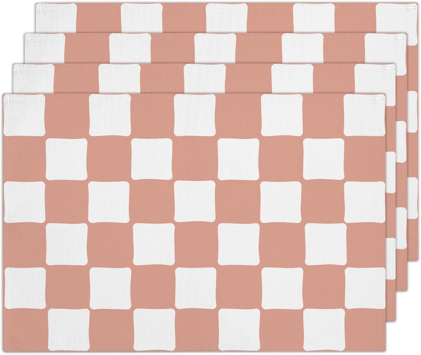 Pink and White Check Plaid Placemats Set of 4, Washable Heat Resistant Placemats Kitchen Table Mats,12x18 Inch Place Mats for Home Restaurant Farmhouse, Indoor Outdoor Party Table Decoration -A03