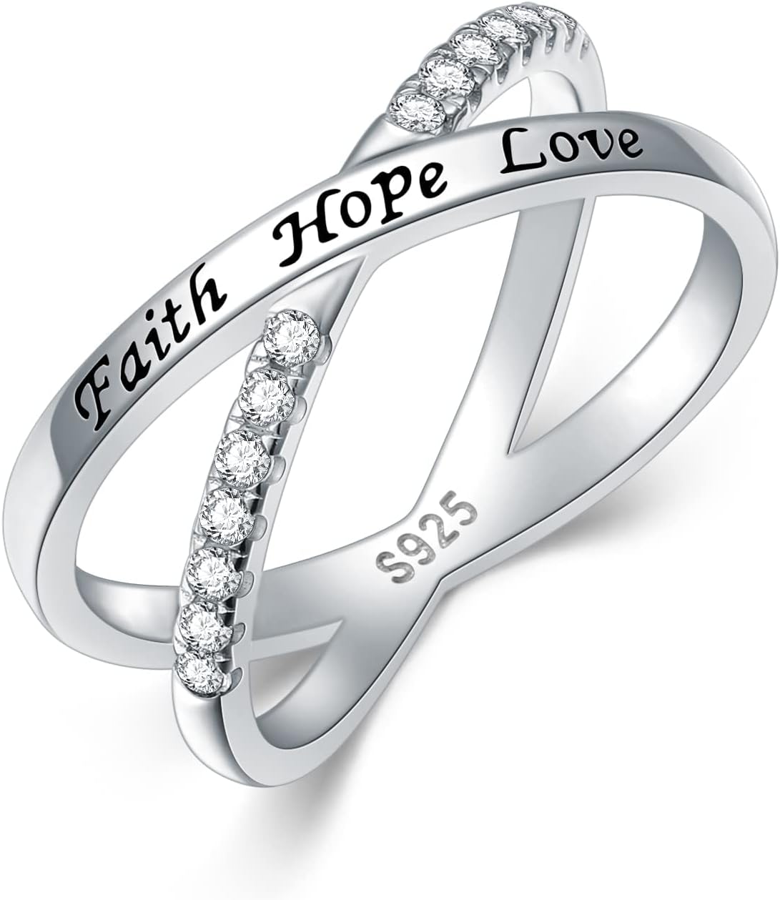 YinShan Cross Rings for Women Girls Sterling Silver Faith Hope Love Rings Engagement Inspirational Jewelry Wedding Band Ring Valentine's Day Gifts for Her