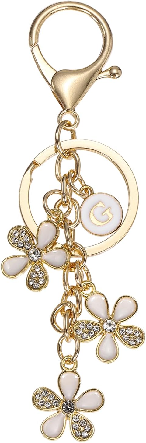 PATIKIL Initial Letter Flower Keychain, Cute Cherry Blossom Rhinestone Keyring for Women Girls Purse Backpack