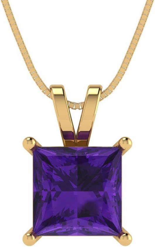Clara Pucci 14K Yellow Gold Plated Solitaire 16" Box-Chain Necklace - Sterling Silver 2ct Princess Cut Amethyst Pendant