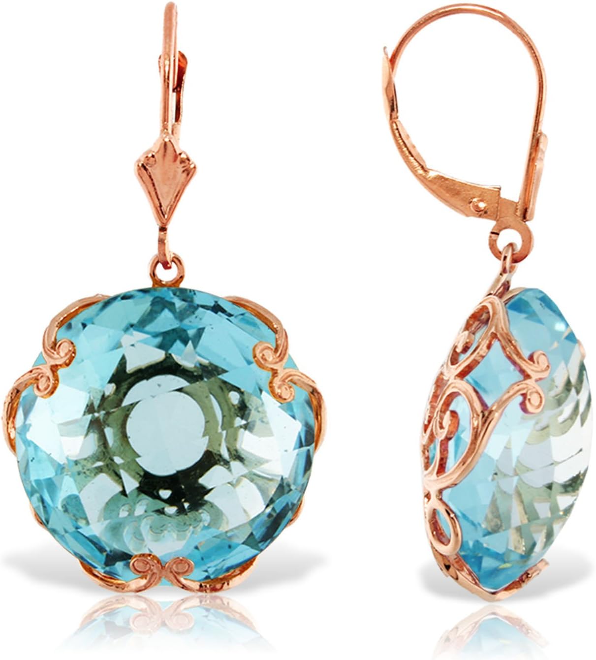 Galaxy Gold GG 14k Solid Rose Gold Leverback Earrings with Checkerboard Cut Round Blue Topaz