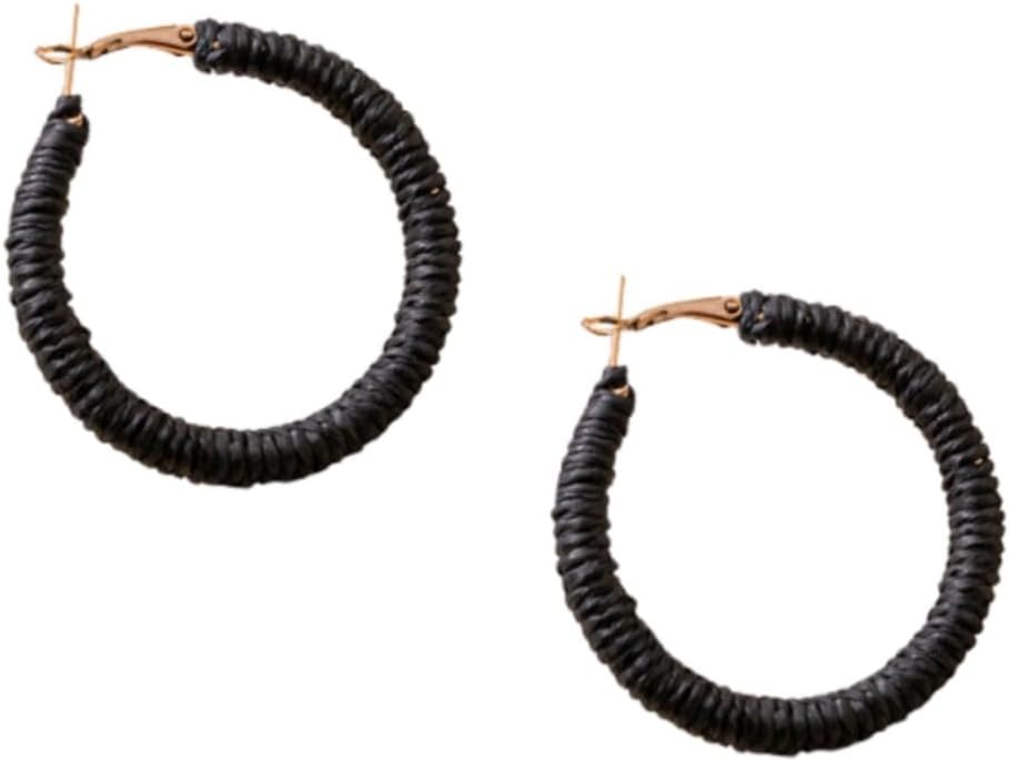 Handmade Rattan Earrings - Large Circle Braided Straw Wicker Drop Earrings - Light Weight Summer Hoops