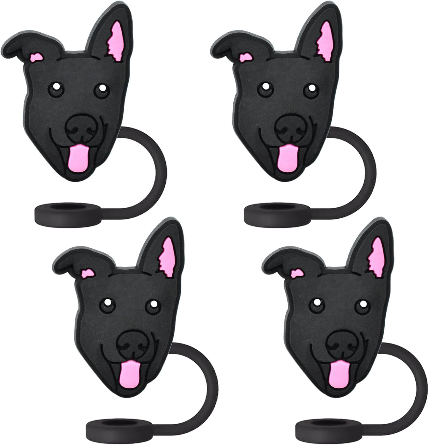German Shepherd Straw Toppers For Stanley Cups;Straw Covers Cap Toppers Compatible With Stanley 30&40 Oz Tumbler, Reusable & Silicone Tumbler Straws Topper For 0.4 Inch/10 Mm Tips 4 Pcs (Black)