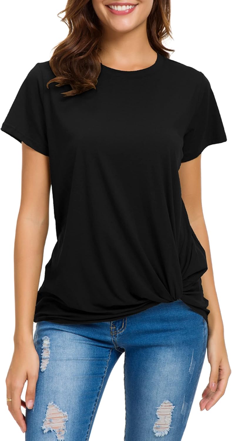 MSHING Women's Casual Round Neck Short Sleeve Tie Up T-Shirt Blouse Comfortable Cotton Basic Tops