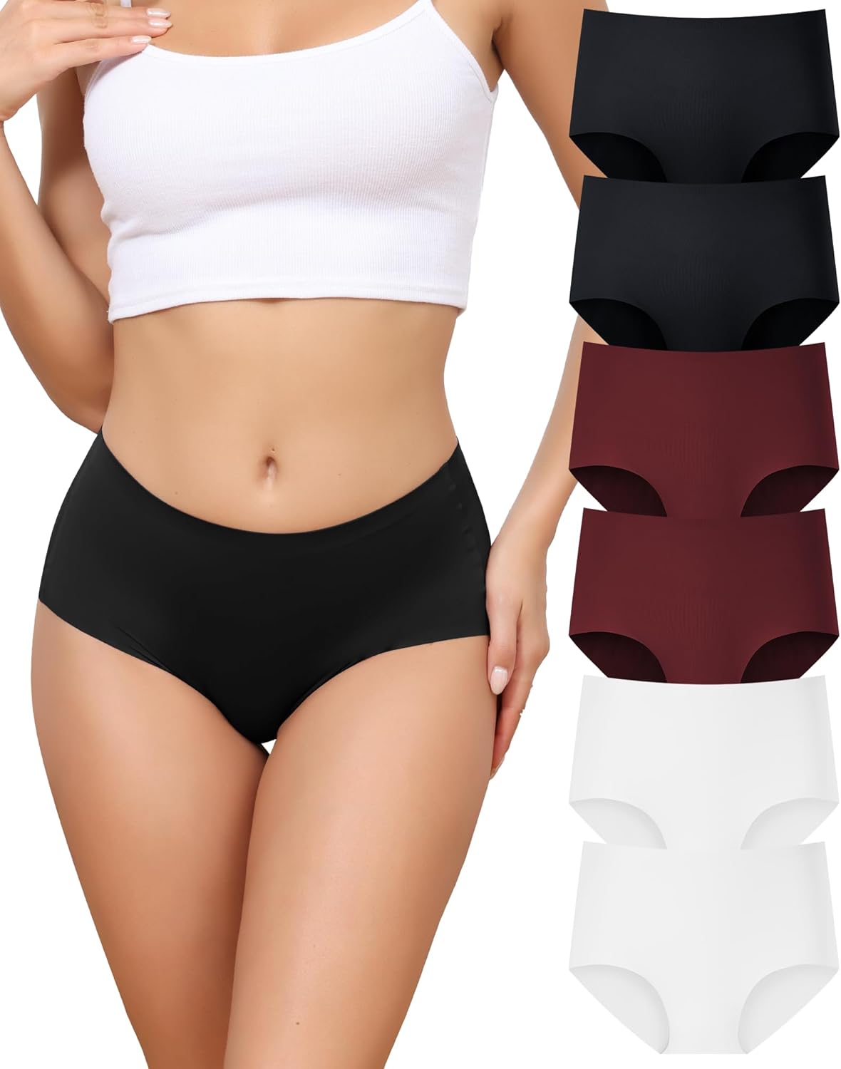 LEVAO Women's High Waisted Seamless Underwear No Show Full Coverage Briefs Stretchy Invisible Panties Cheeky Pack of 6