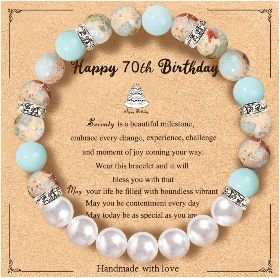 20th 30th 40th 50th 60th 70th Birthday Gifts for Women Teen Girls,Natural Stone Bracelet With Writable Greeting Cards for Friends Mom Sister Grandma Daughter Wife