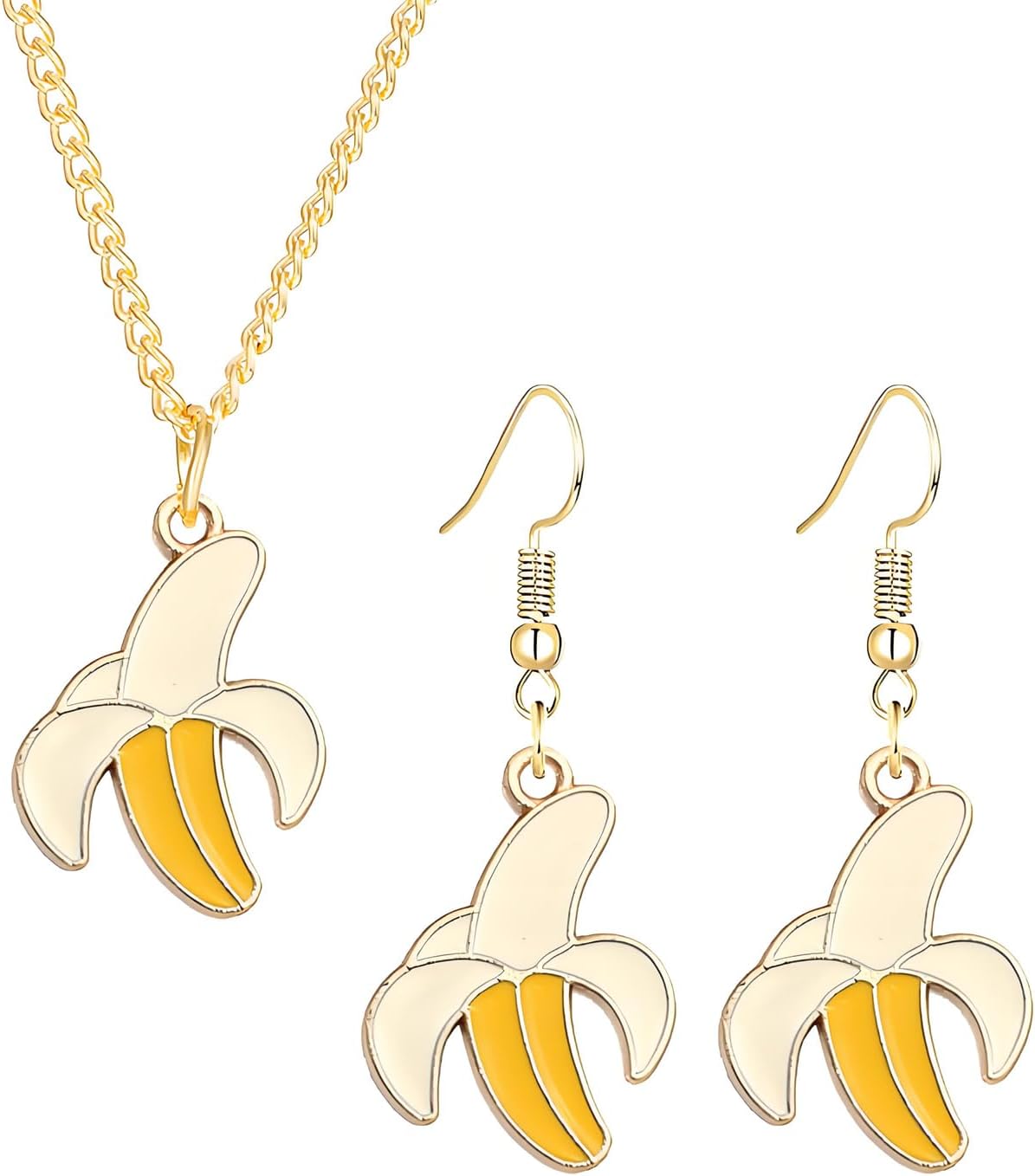 Dreuyet Banana Earrings Necklace Set for Her Women 3D Cute Lifelike Summer Fruit Theme Banana Jewelry Sets Creative Imitate Food Dangle Drop Earrings Bananas Lovers BFF Gifts