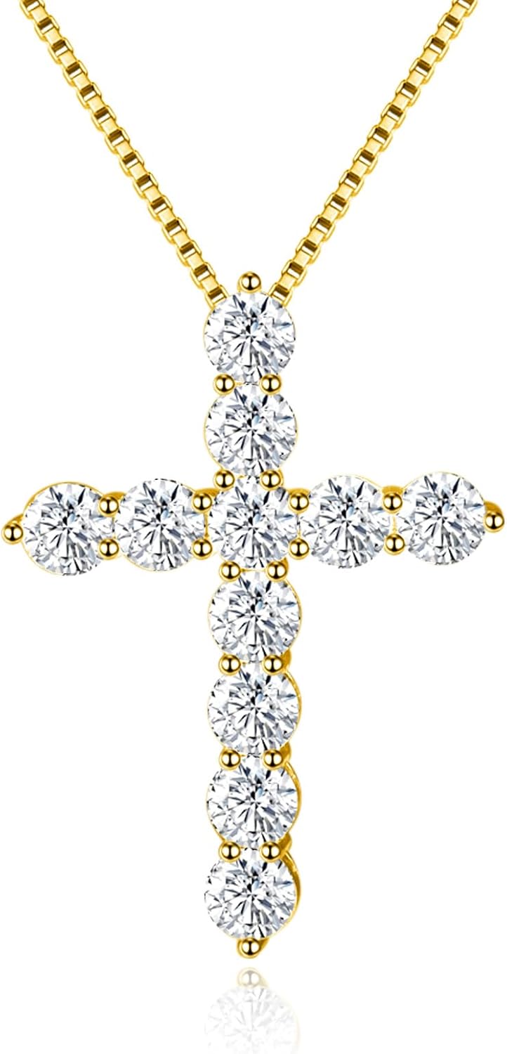 LANE WOODS Simulated-Diamond Moissanite Cross Necklace: 18k White Gold Plated Sterling Silver - Cross Pendant for Men Women Religious Jewelry Christian Gifts