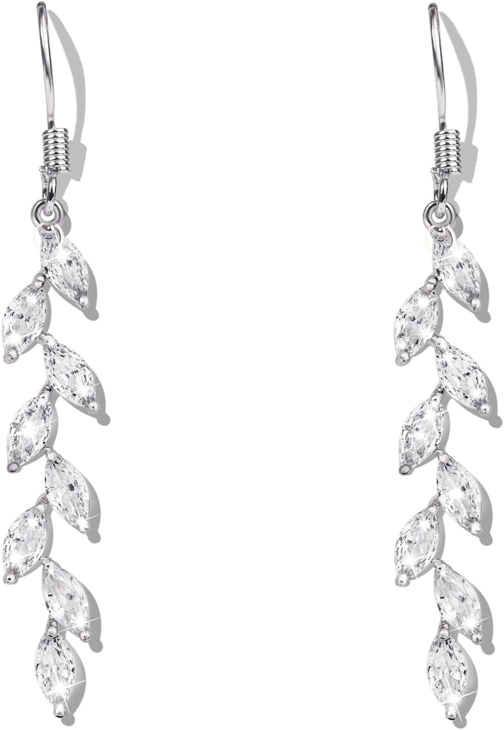 Handmade Leaf Earrings Crystal Wedding Dangle Earrings Brides Bridesmaid Gift for Women