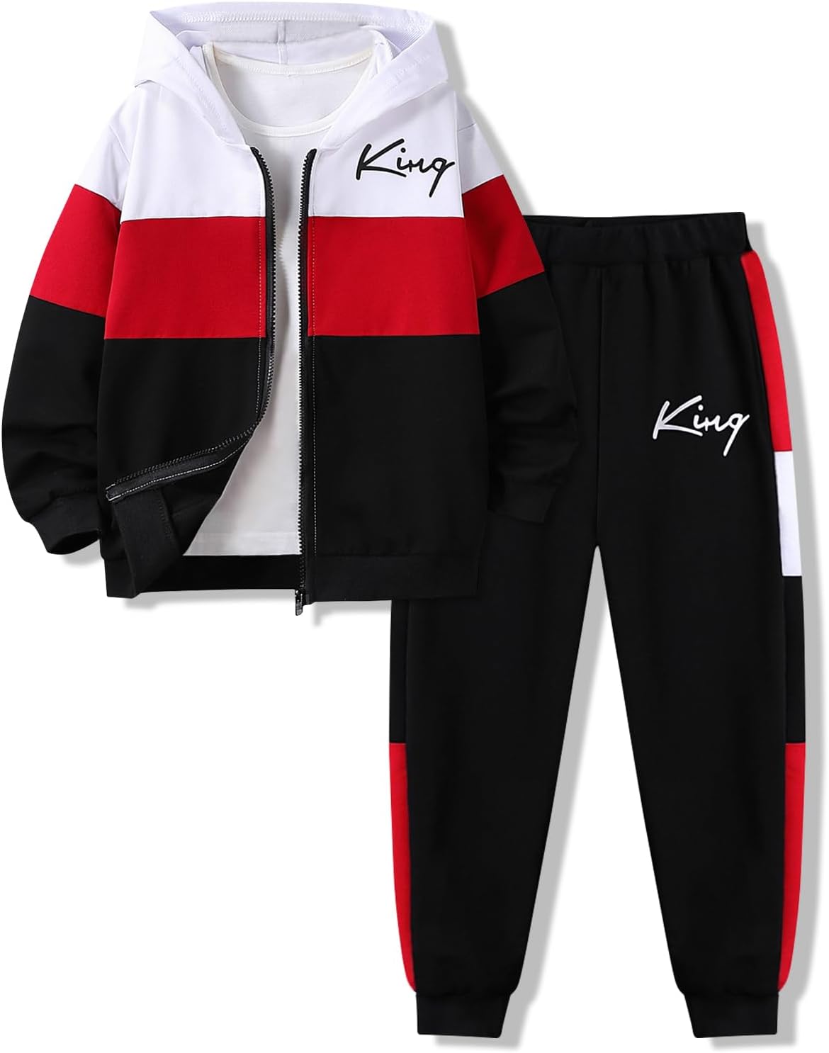 Boys Clothes 2 Piece Color Block Zip Hooded Sweatshirt & Pant Kids Fall Outfits Size 6-12 Years