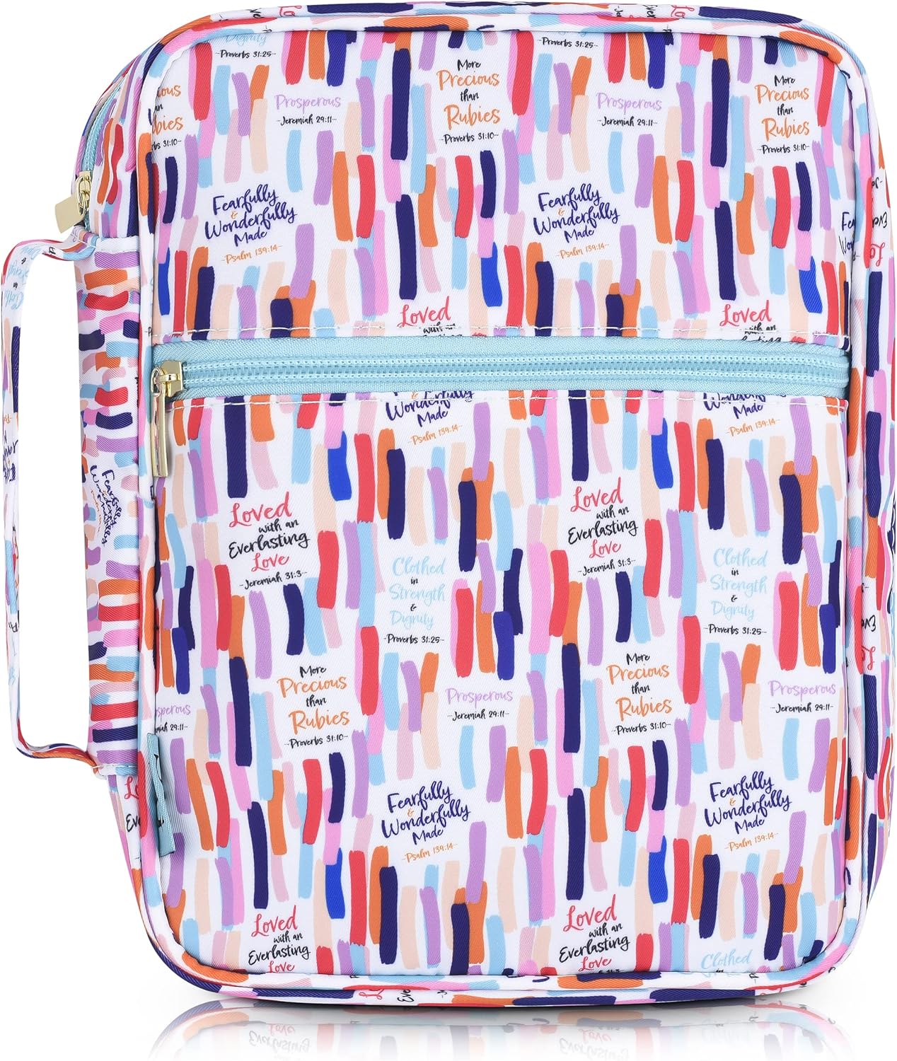 - BRIGHTEN YOUR MOOD AND UPLIFT YOUR SPIRIT: Your brightly colored cover is just like God’s gift of a rainbow in the sky. What a beautiful way to keep your Bible study and church items organized. With so many pockets you can leave that purse at home!