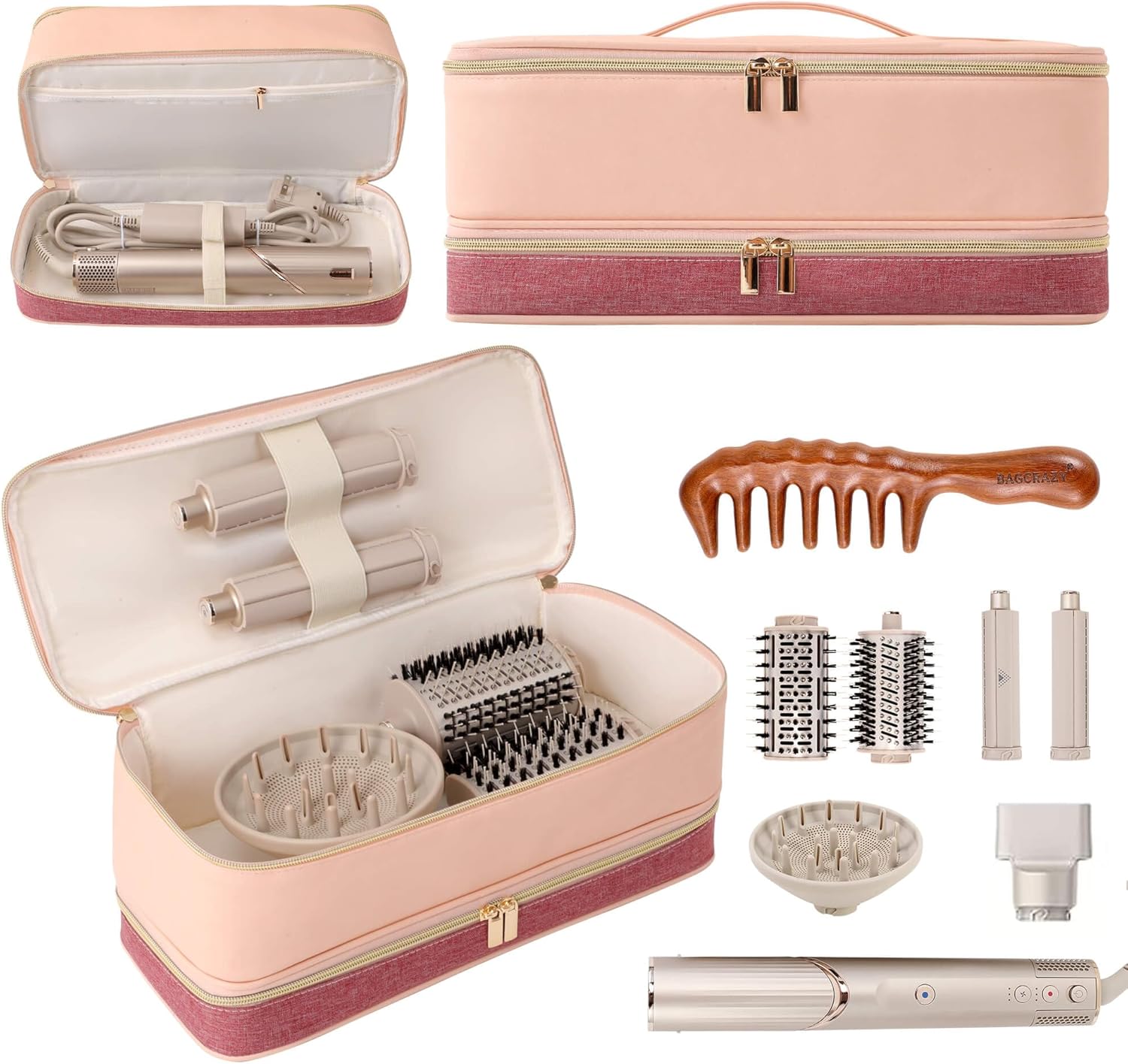 - SUPERIOR QUALITY & PROTECTION: This double-layer dyson airwrap travel case is crafted from high-quality fabric and PU leather. The chic combination of crimson fabric and pink leather provides a fashionable and durable exterior. The inner layer is soft and scratch-resistant, ensuring your hair dryer and accessories are well-protected. The outer layer offers excellent scratch, dust, and water resistance, making it an ideal Shark hair dryer case.