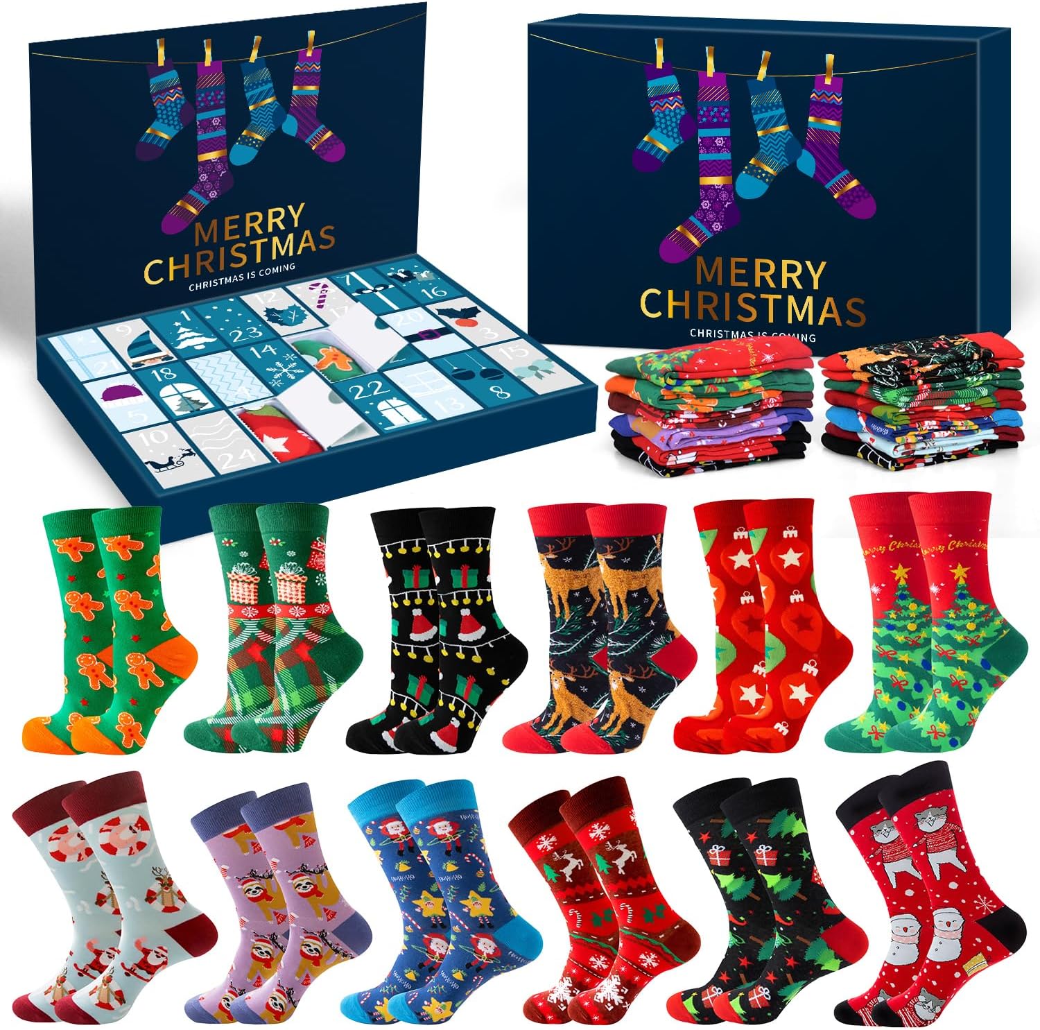MOVINPE Socks Advent Calendar for Adults Men Women, 12 Pair of Christmas Crew Socks Funny Sock Countdown to 2025 Christmas, 24 Days Surprise Xmas Gifts Warm Cotton Sock