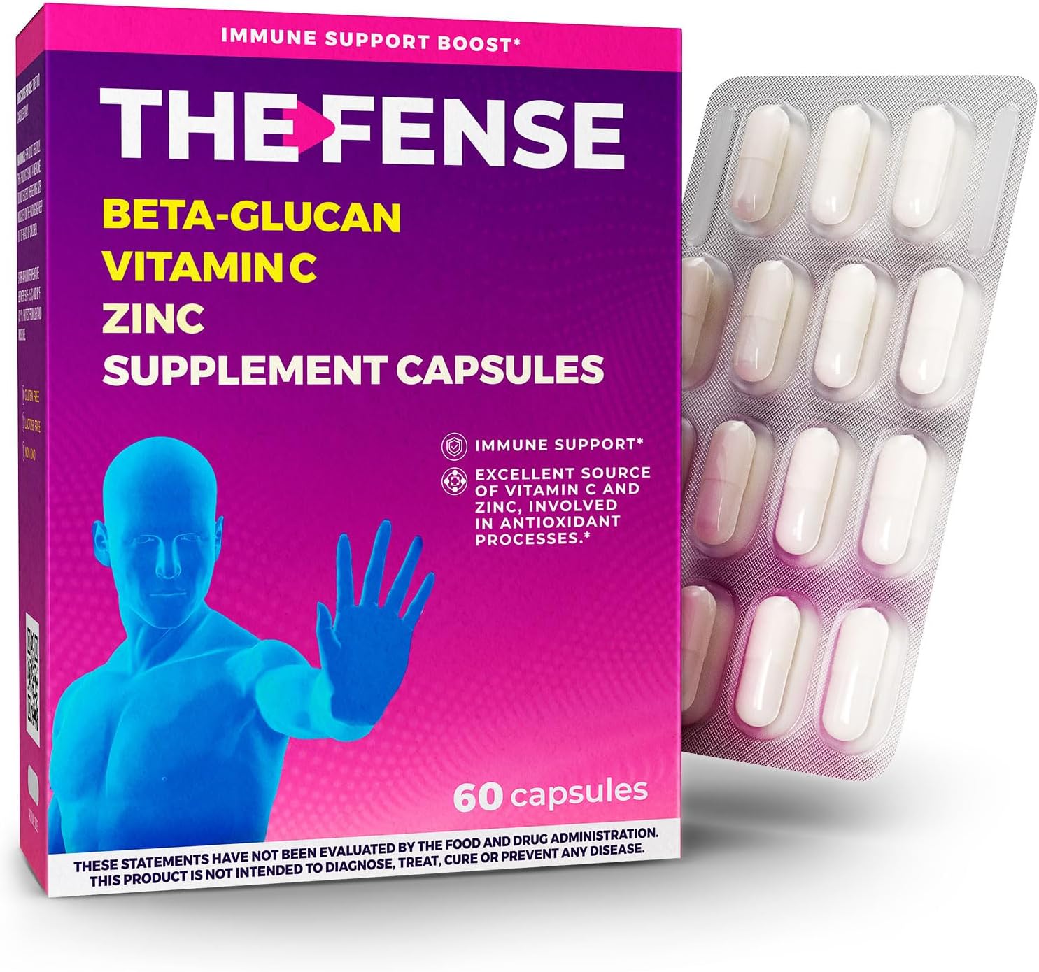 THE-FENSE Beta Glucan, Vitamin C and Zinc Supplement Capsules - Immune Support Boost for Women and Men - Free of Gluten and Lactose, Non-GMO - 60 Capsules