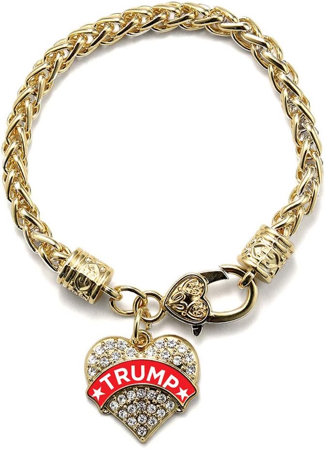 Inspired Silver - Gold Pave Heart Charm Bracelet with Cubic Zirconia Jewelry