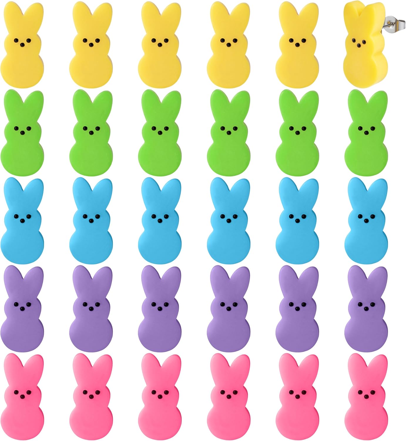 Xqumoi 30Pcs Easter Bunny Stud Earrings - Cute Rabbit Resin Stud Earrings with Hypoallergenic Stainless Steel Jewelry Small Colorful Candy Accessories Happy Easter Gift for Women