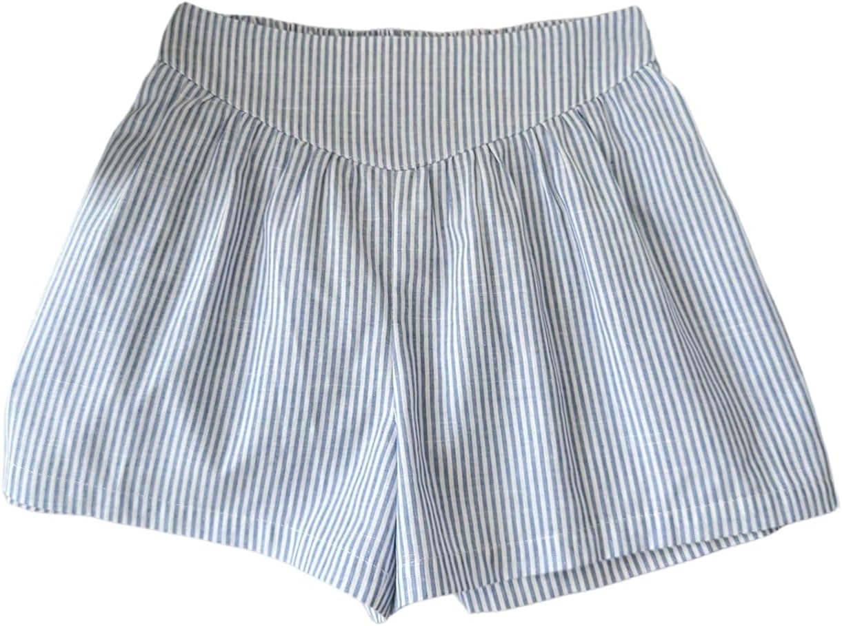 Women's Summer Casual Cotton Striped Shorts V-Shape Elastic Waist Wide Leg High Waisted Shorts Blue and White