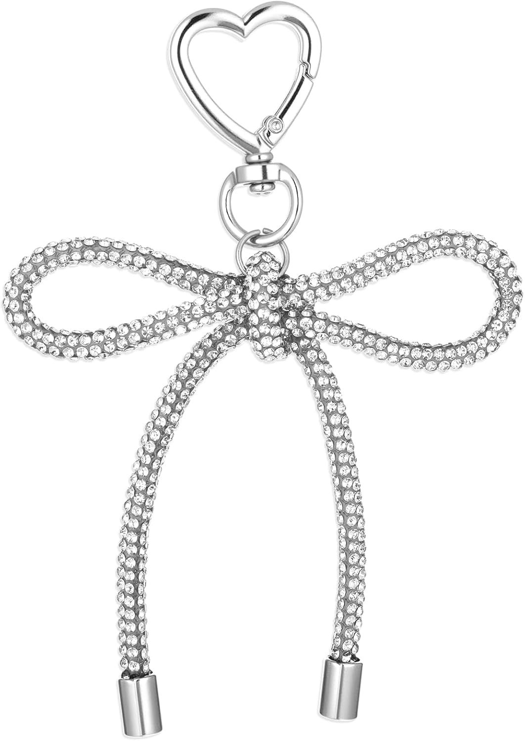 Bow Keychain Silver Bow Rhinestone Keychain Accessories Rhinestone Bows Key Chains Bling Bowknot Keyring Charm Women Cute Ribbon Bowknot Pendant Car Key Chain Bag Charms