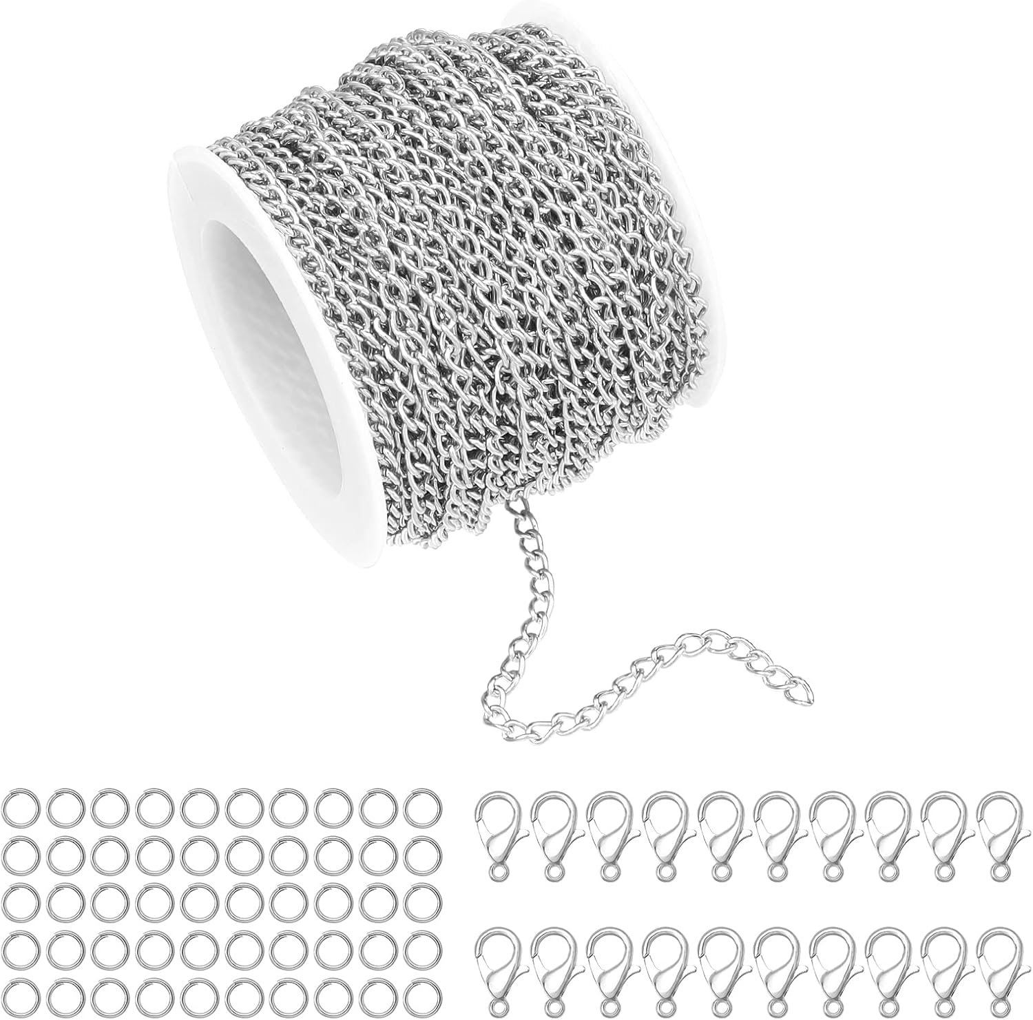 - Contains:30feet chains,20pcs lobster clasps and 50pcs jump rings,the necklace chains are made of good quality iron