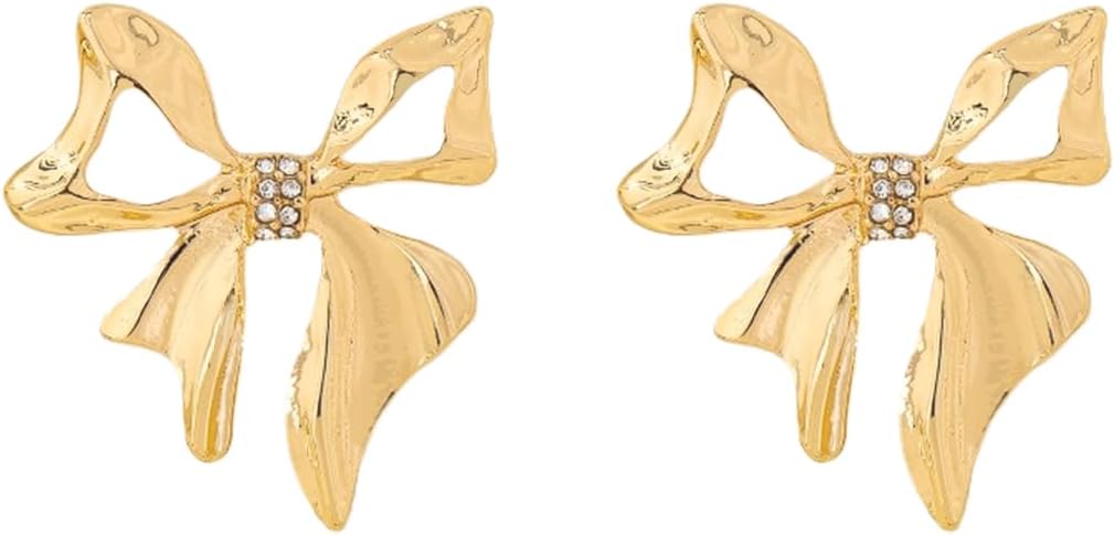 Gold Bow Stud Earrings for Women Double Ribbon Bow Earrings Rhinestone Bowknot Earrings Christmas Jewelry Gift