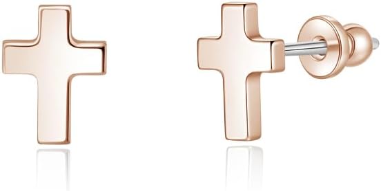 Limerencia Titanium Stud Earrings - Hypoallergenic Earrings for Women Men Sensitive Ears - Minimalist Jewelry Flatback Cross Bolt Cartilage Earrings