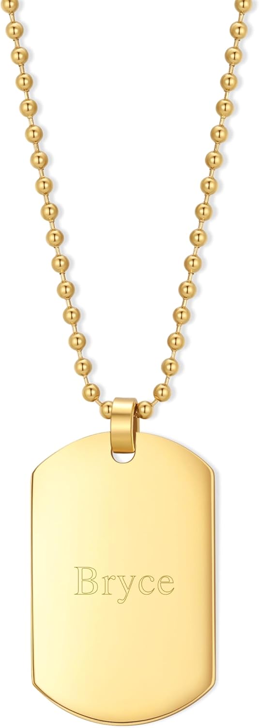 EVE'S ADDICTION Men's Custom Engraved Gold Tone 2 Inch Dog Tag Pendant Necklace (18", 20" 24" or 30" chain) - Personalized Dog Tag Necklace for Him - Gifts for Men - Gifts for Dad