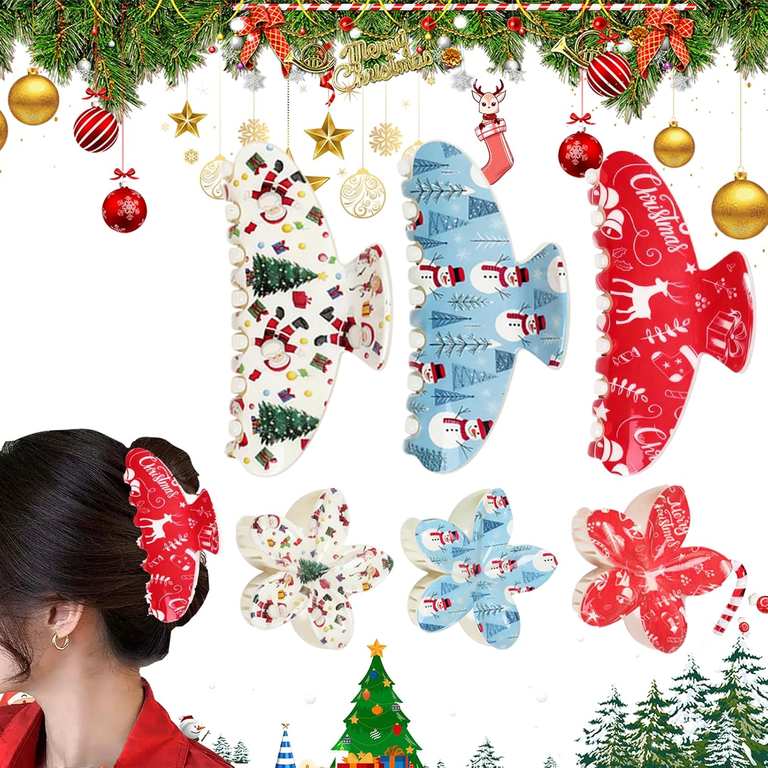 - 【Strong & Secure Hold】These Christmas hair claws are designed with a strong grip to securely hold your hair all day long.Whether you have thick, thin, or medium hair, these decorative hair clips effectively manage flyaways and keep your hairstyle intact, from morning preparations to evening festivities.