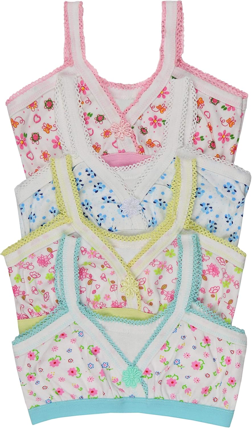 ToBeInStyle Girl's 4 Pack Elastic Crochet Trim Fold Over Cami Training Bras
