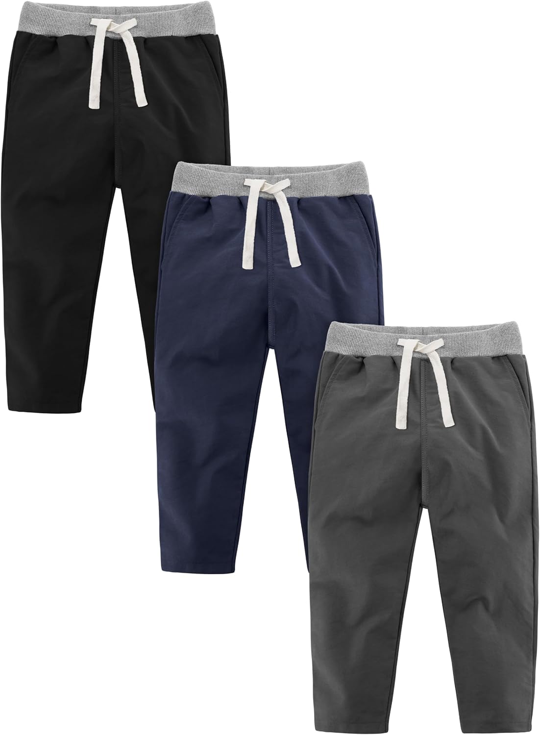 Resinta 3 Packs Boys and Toddlers' Pull-On Pant Boys Uniform Pants Cotton Pull-on Pants with Drawstring