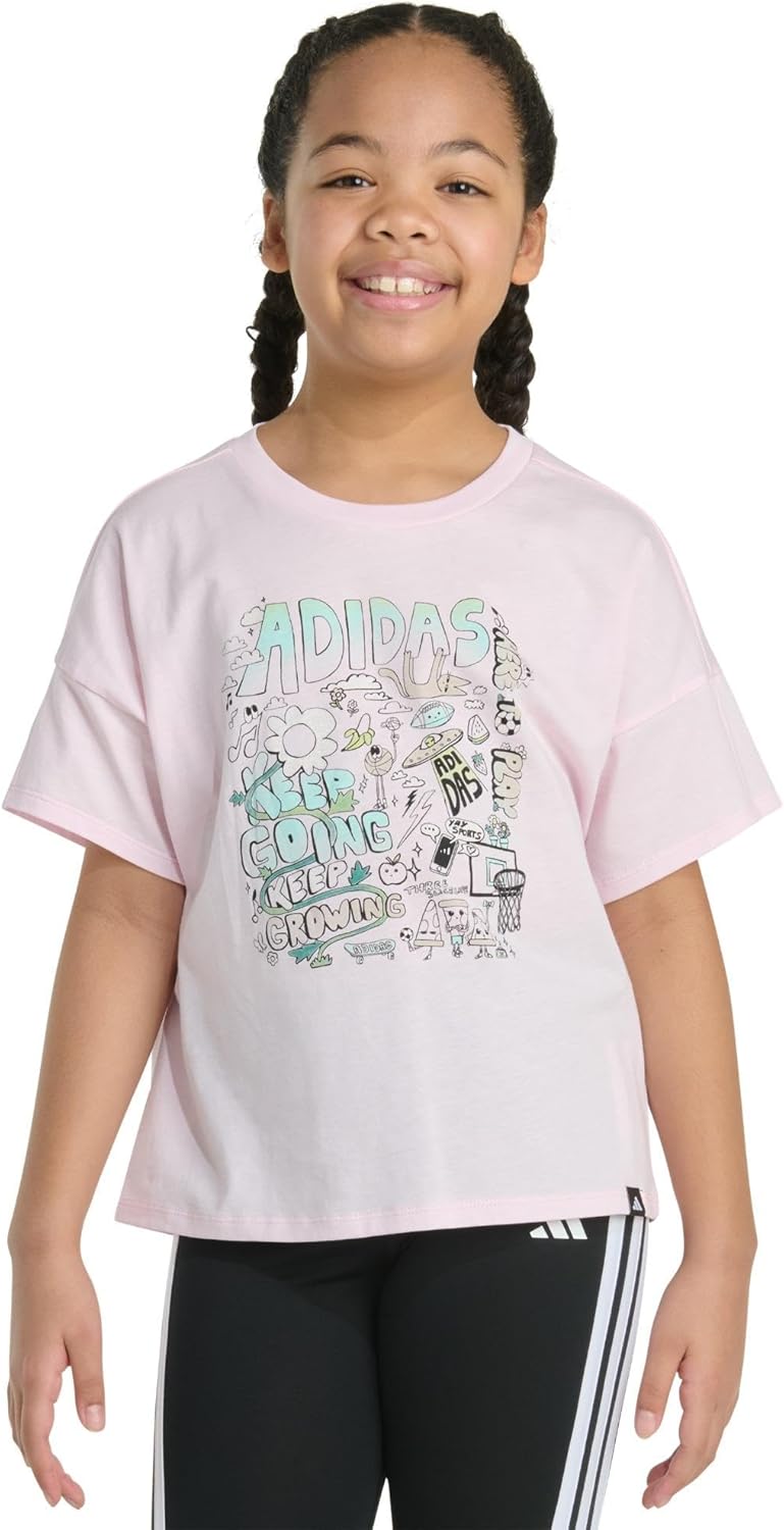 adidas Girls' Short Sleeve Drop Shoulder Tee