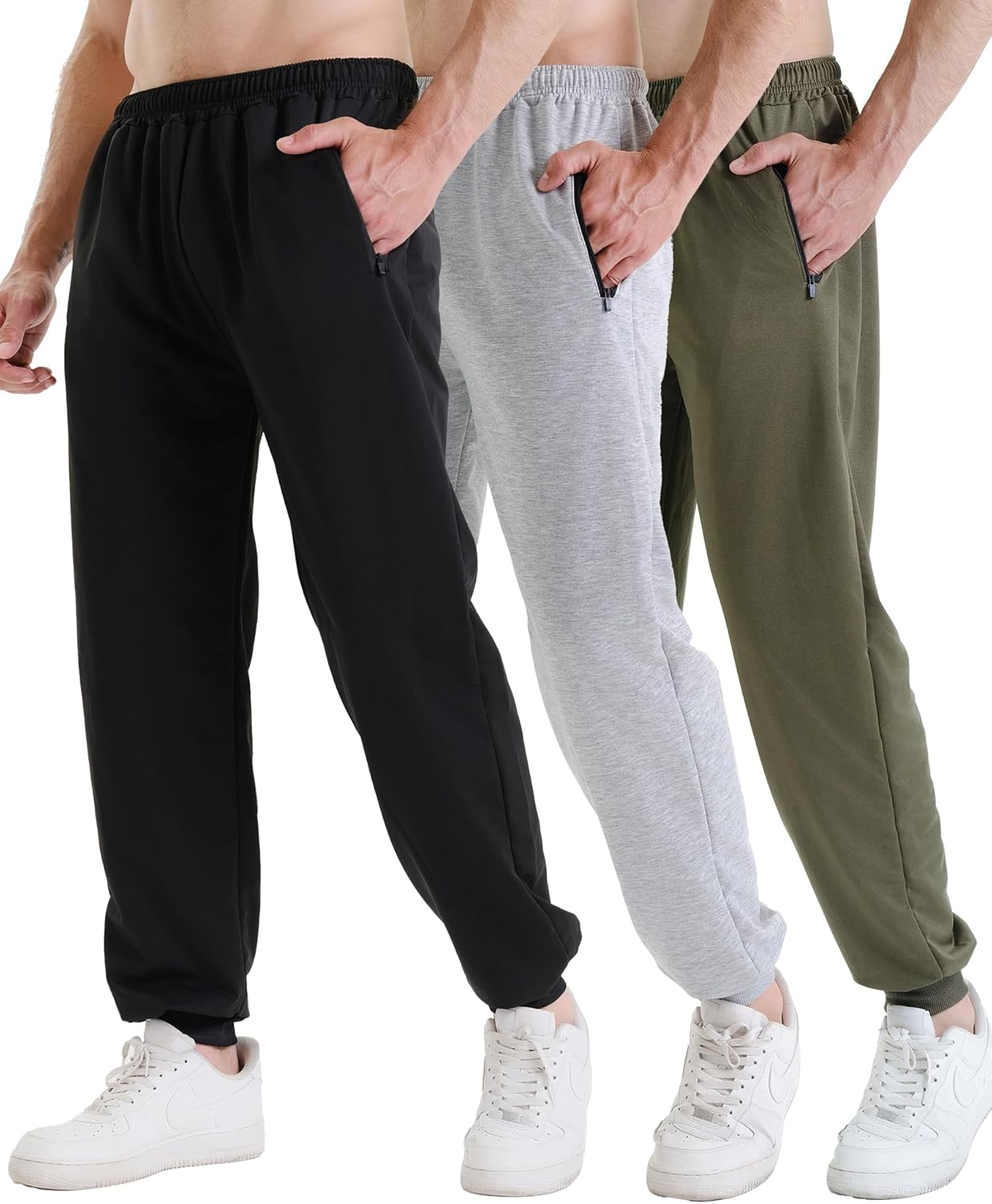 3 Pack Sweatpants for Men Athletic Gym Workout Mens Joggers with Zipper Pockets Active Running Pants