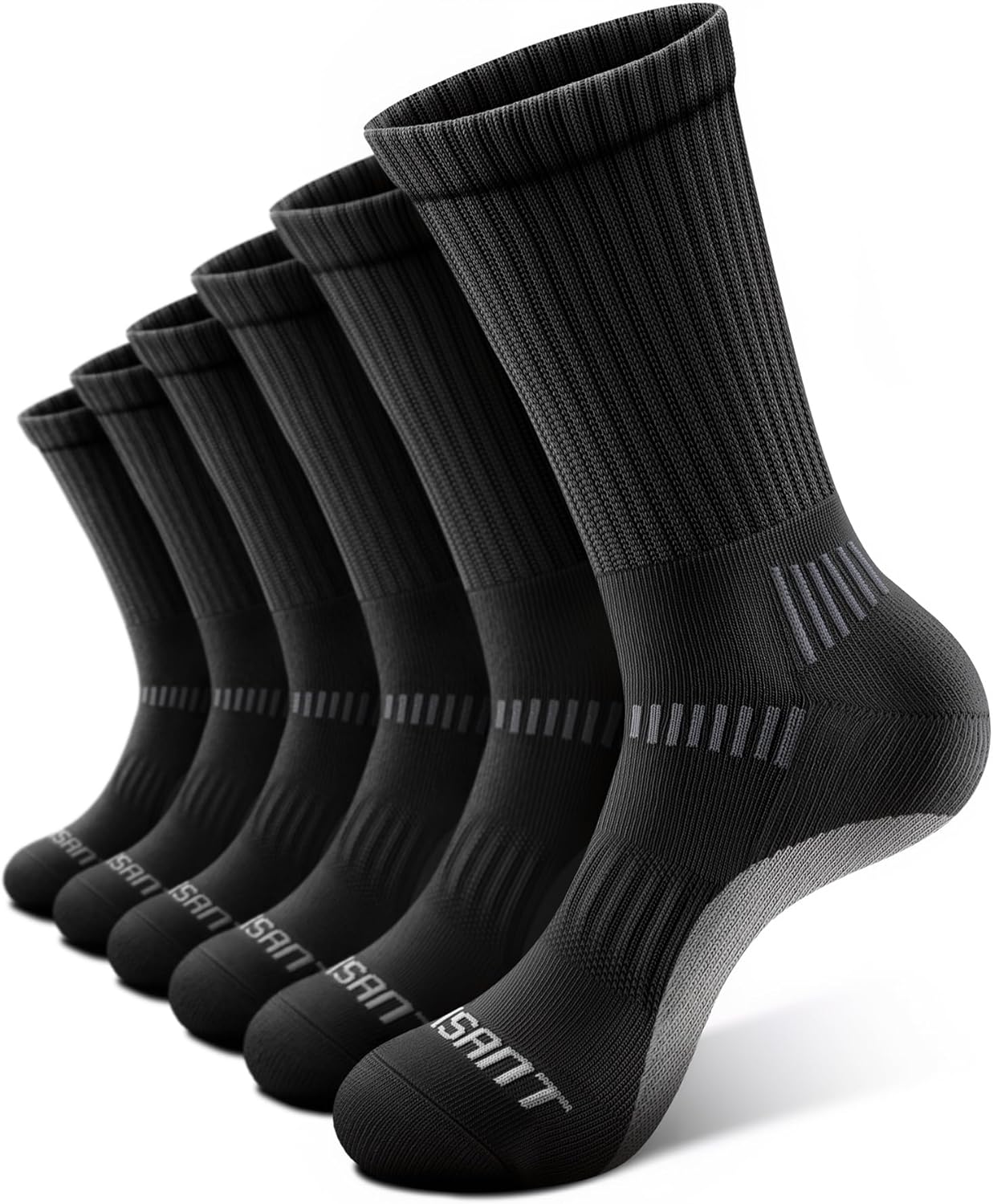 Bigant Mens Socks Athletic Compression Cushioned Crew Performance Sports Work Socks Running Arch Support Upgraded Wicking