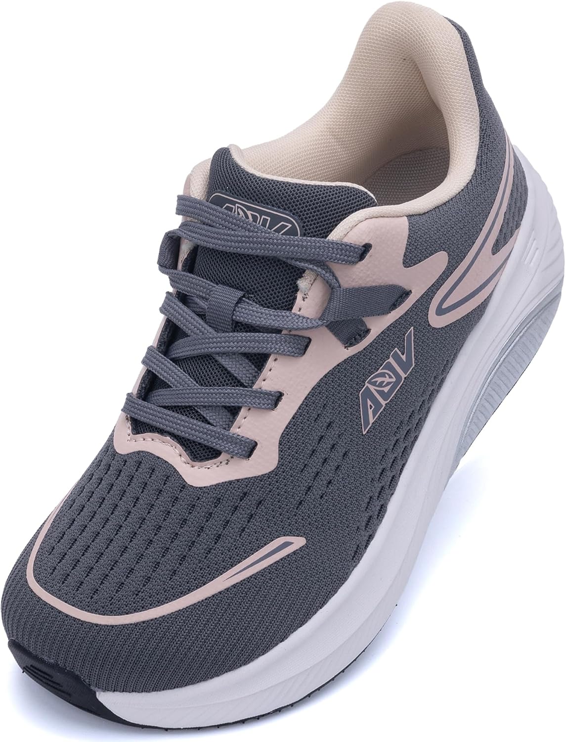 AOV Womens Wide Toe Box Walking Shoes Arch Support Sneakers for Plantar Fasciitis Lightweight Orthotic Tennis Shoes for Outwork Gym GreyPink Size 9.5