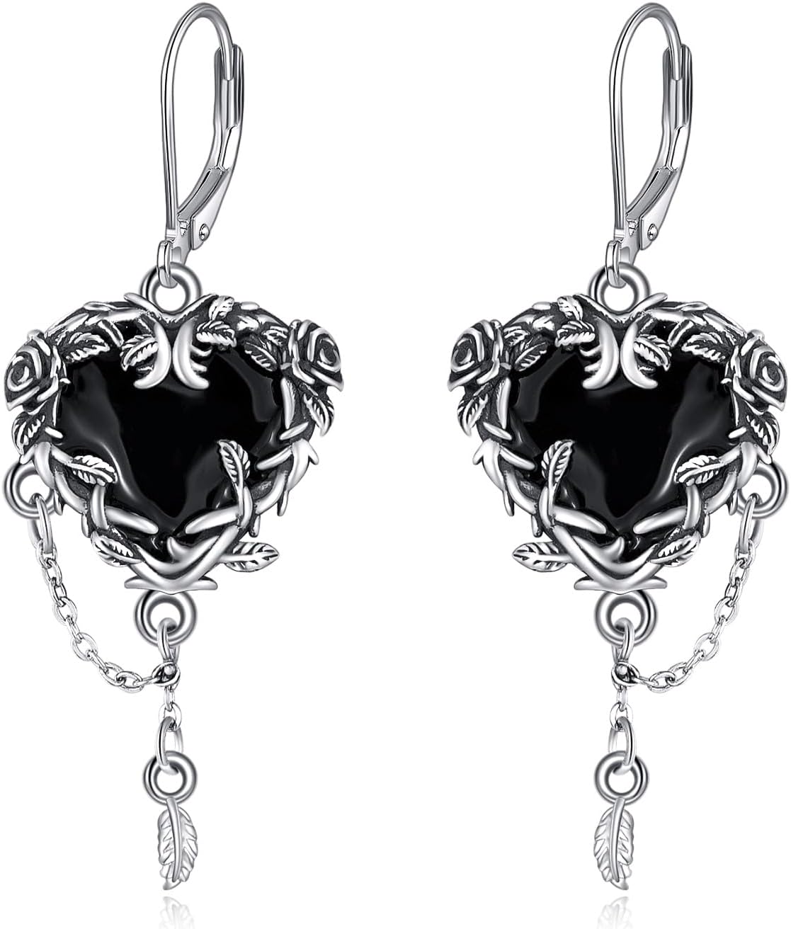Gothic Earrings 925 Sterling Silver Black Witches Heart/Sword Dangle Dangly Drop Leverback Earrings Goth Jewelry Gifts for Women