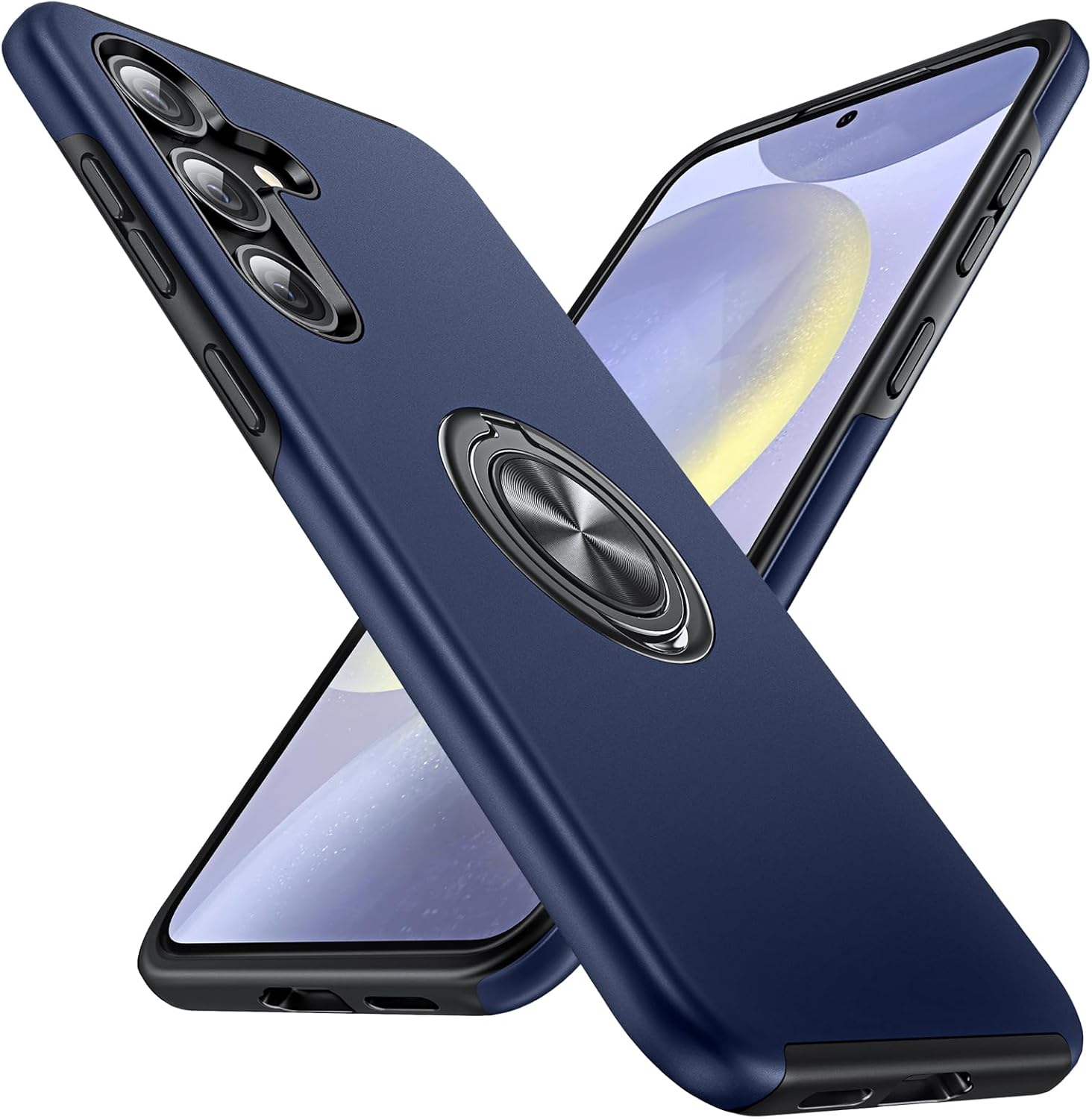 - 【No Fall-off Kickstand】The built-in embedded stand makes the ring have a stronger grip on the galaxy S24 case, and the ring is not easy to fall off. Also, it can rotate to any angles in 360°horizontal + 180°vertical, provides more convenience in our daily life, watching TV, kitchening, working, reading and more. Finally, it is not easy to drop when the hidden ring placed flat in a pocket, bag, on the table and etc. metal ring kickstand also works greatly with magnetic car mount