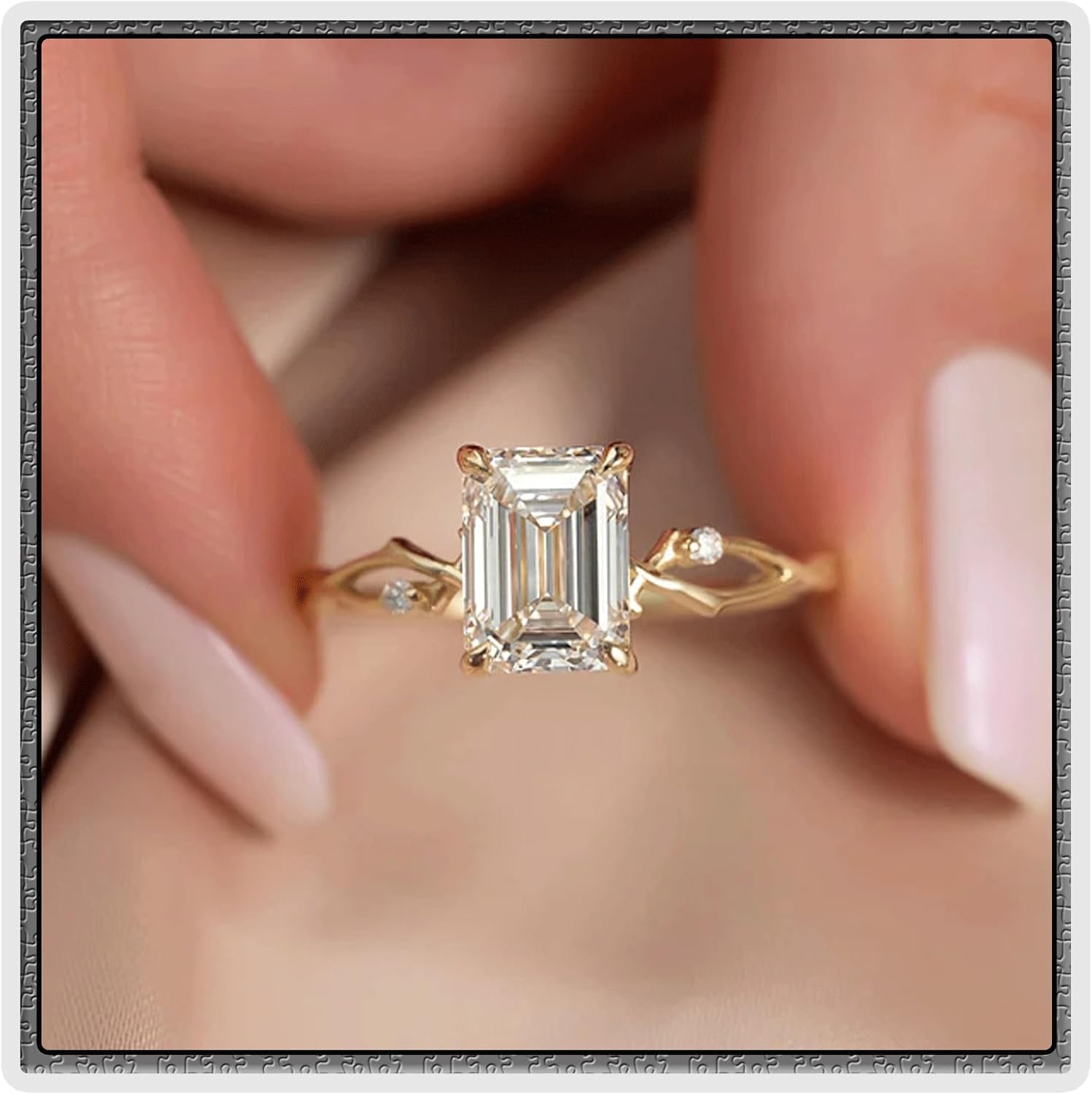 3CT Engagement Ring for Women 925 Sterling Silver Radiant Cut Cubic Zirconia Wedding Band 14K Gold Plated Promise Ring for Her Size 5-9