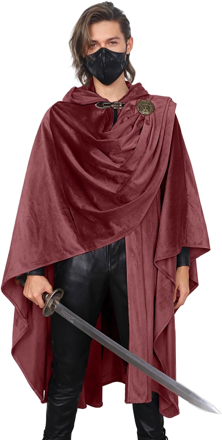 Joukavor Renaissance Cloak with Medieval Brooch - Ren Faire Hooded Cape for Halloween Cosplay Fantasy LARP