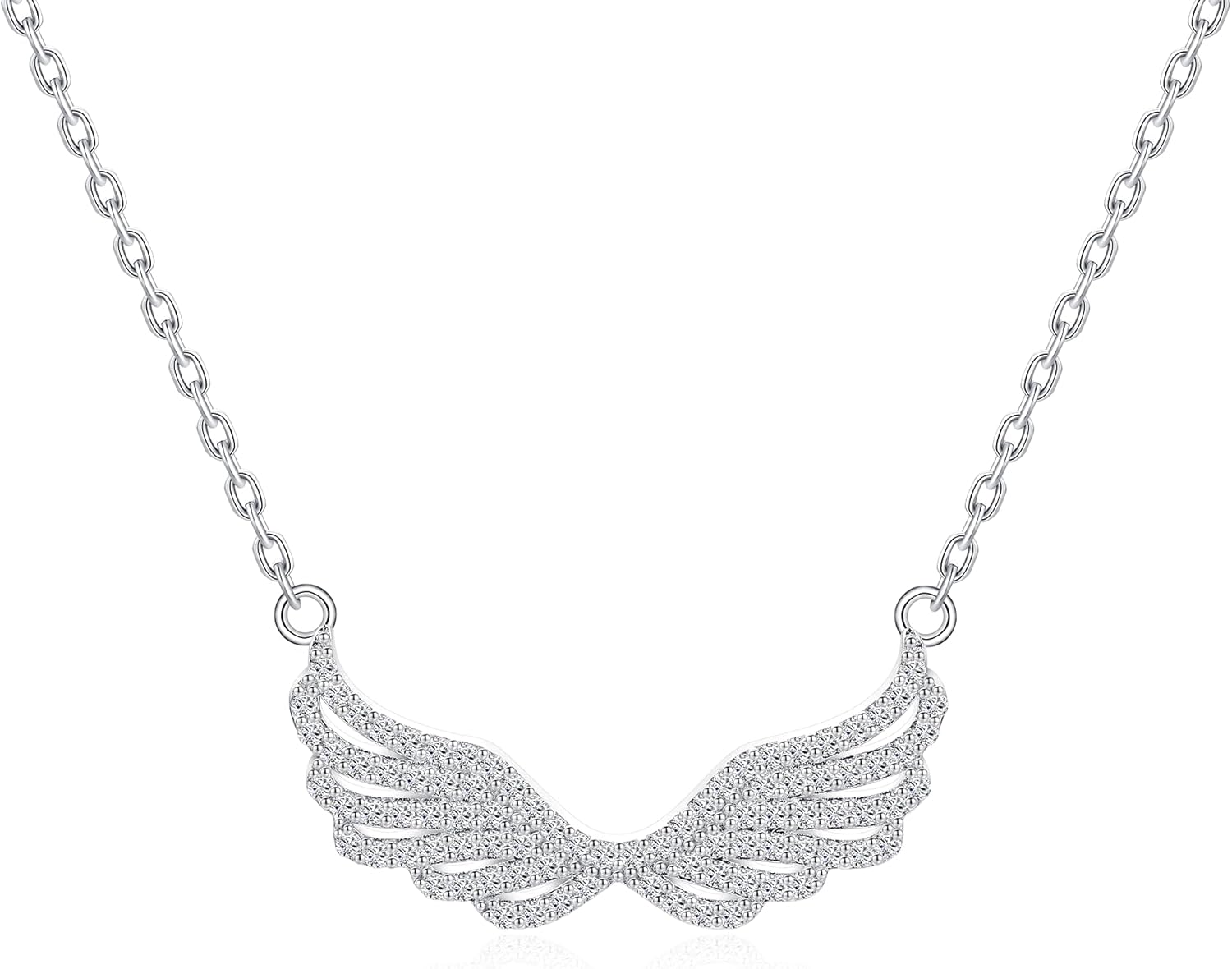 IMOLOVE Angel Wings Necklace for Women, 0.4 Carat Trendy 925 Sterling Silver Pendant Necklaces for Women Simple Dainty Moissanite Pendant Necklace for Women with 18K White Gold Plated