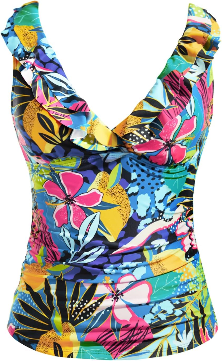 Yonique Women's Tankini Top Only Tummy Control Bathing Suit Top Ruffle Swimsuit Top V Neck Swim Tank Top No Bottom