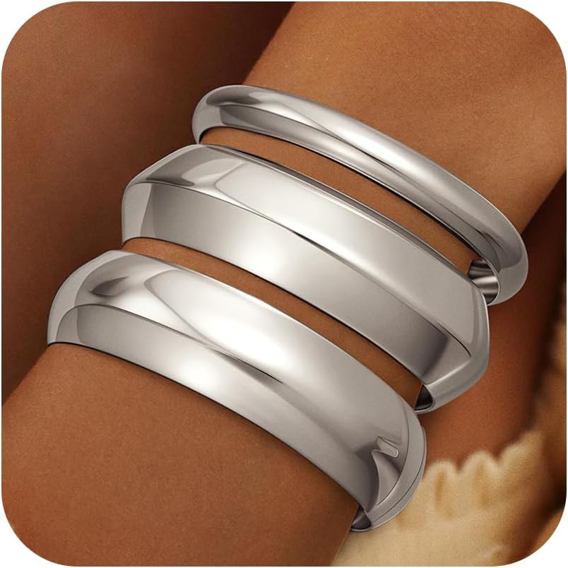 Chunky Gold Bangle Bracelets for Women, Dainty 14K Gold Plated Big Stackable Bangles Set, Trendy Cuff Bracelet Stack Fashion Jewelry Gifts