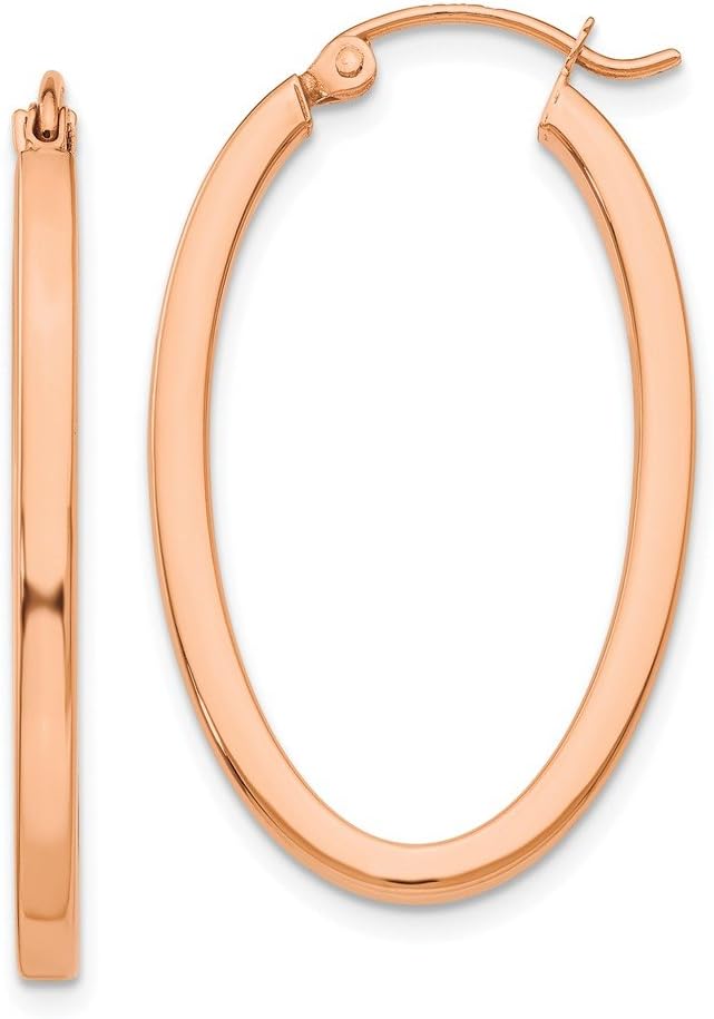 The Black Bow 2mm x 29mm 14k Rose Gold Square Tube Oval Hoop Earrings