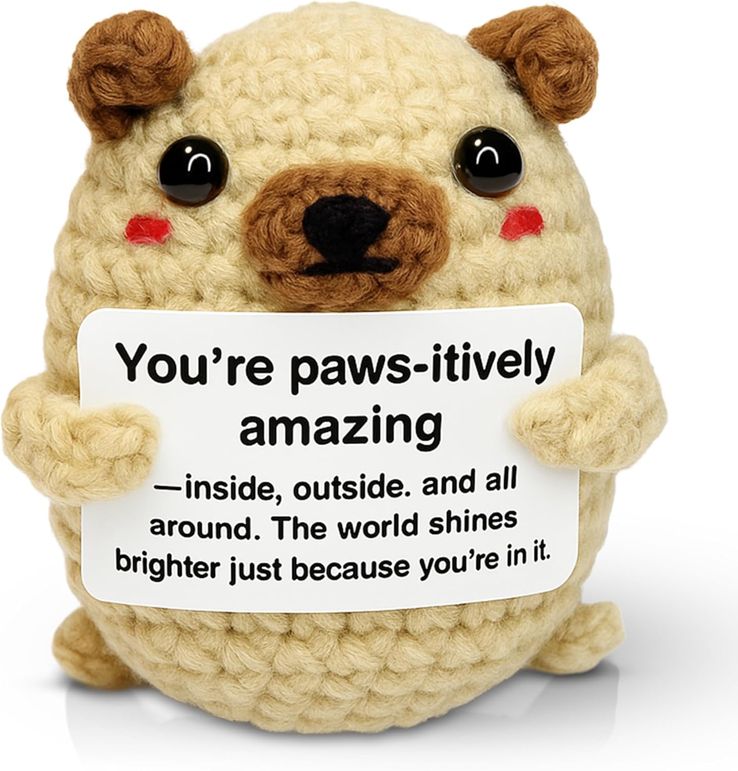 Positive Crochet Animals Pug - Handmade Emotional Support Crochet Dog Desk Decor Gifts Emotional Support Gifts for Family, Friends, Coworker, Girlfriends