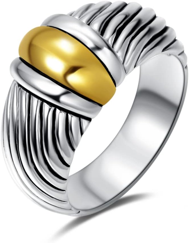 UNY JEWEL Ring 10mm Gold Color Bar Two Tone Gold and Silver Plating Twisted Cable Wire Designer Inspired Womens Jewelry Ring Bands