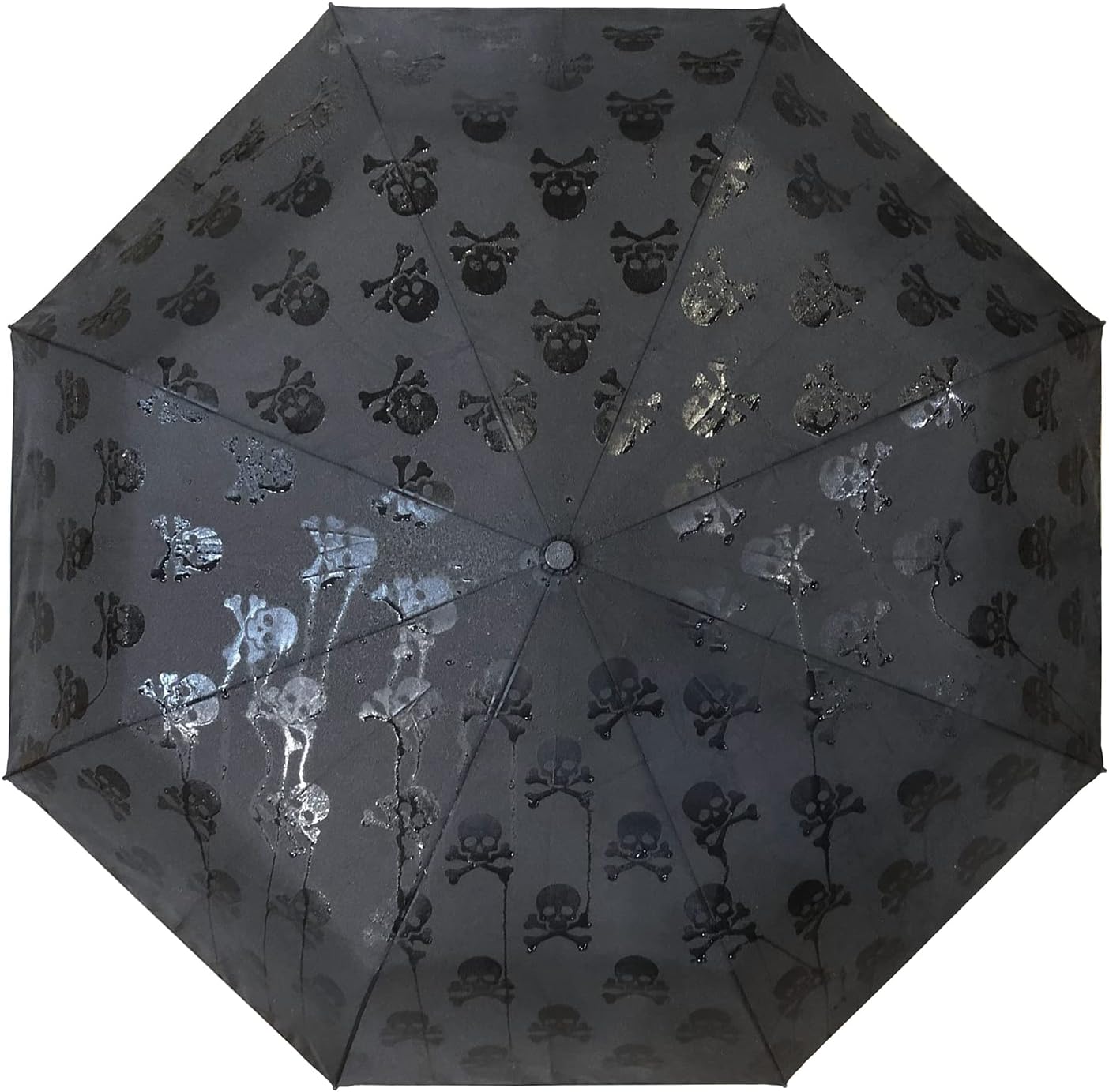 - Watch the small umbrella change before your eyes when gets wet; Glossy black skulls replace the boring portable umbrella's canopy & become invisible when dry; Goth accessories for secret weirdos
