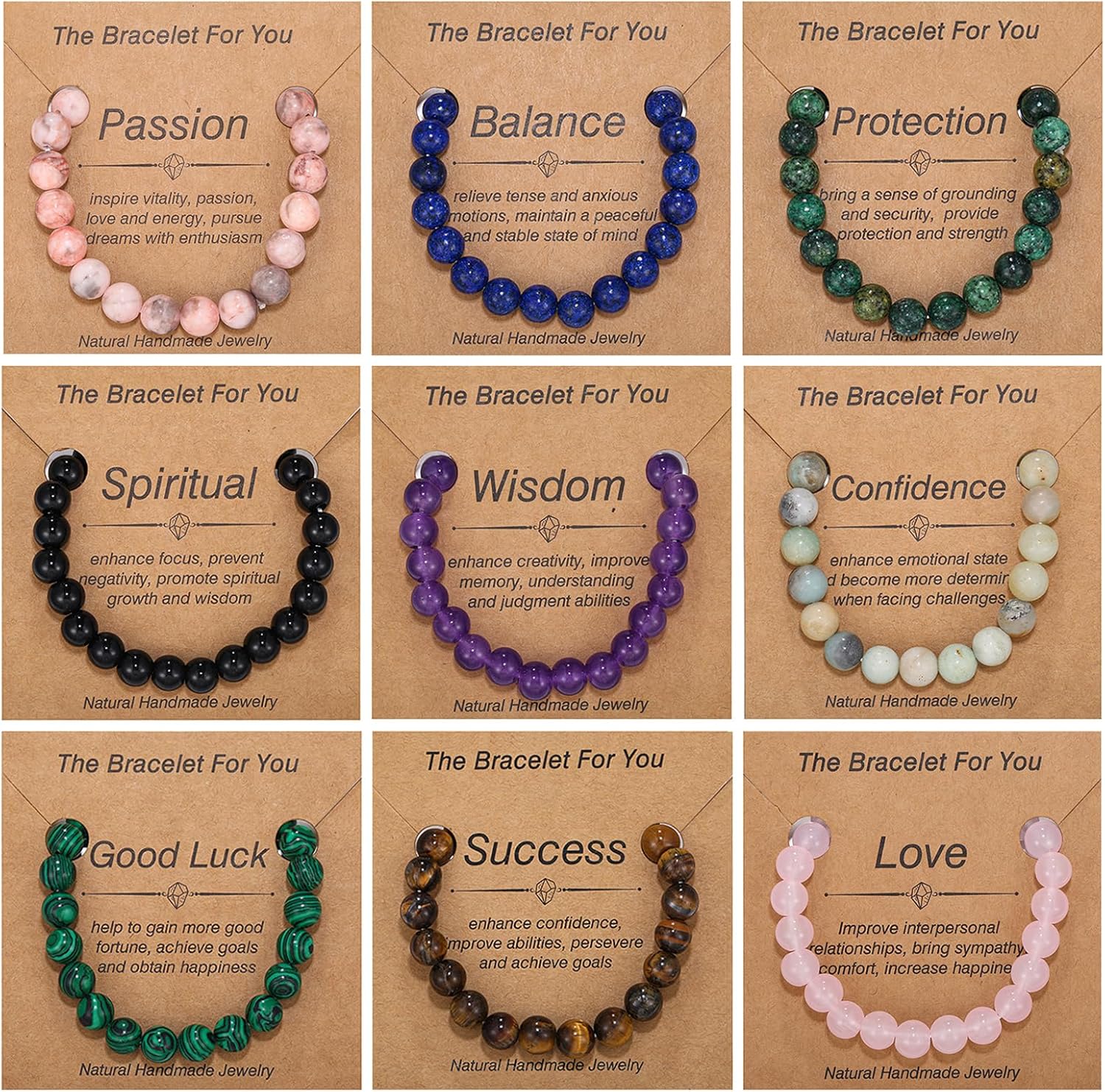 YVVLEE 9 Pcs Crystal Stone Bracelets for Women Men Semi-Precious Gemstone Beaded Bracelets 8mm Natural Stone Beads Bracelet Protection Anxiety Spiritual Stretch Bracelets Set Jewelry