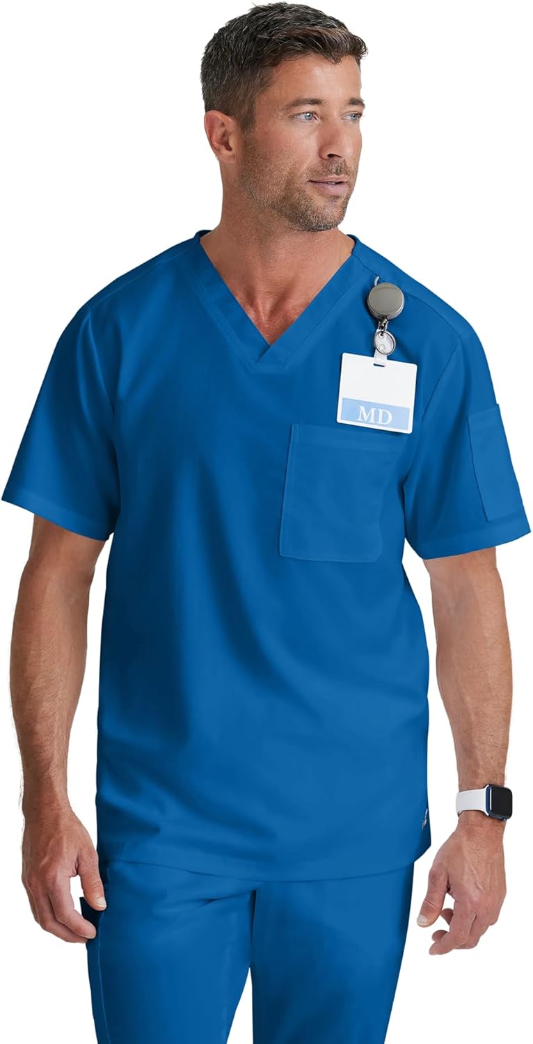 Grey's Anatomy Men's GRT091 Evan Top 2 Pocket V-Neck Scrub Top